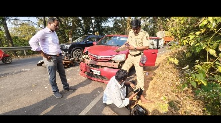 सावंतवाडी प्रतिनिधी: दारूच्या नशेमध्ये सुनील सलामवाडकर ४३ चंदगड या मोटरसायकल चालकाने रॉंग साईडने येऊन समोरून येणाऱ्या कारला जोरदार धडक दिली. डोक्यात हेल्मेट असल्यामुळे सुदैवाने त्याचा जीव वाचला परंतु कारचालकाचे मोठ्या प्रमाणात नुकसान झाले आहे. सामाजिक बांधिलकी प्रतिष्ठानचे रवी जाधव घटनास्थळी दाखल होऊन त्यांनी तत्काळ पोलिसांना बोलून घेतले. सावंतवाडी पोलीस ठाण्याचे पोलीस कर्मचारी श्री महेश जाधव यांनी तात्काळ घटनास्थळी जाऊन मदतकार्य सुरु केले. त्यानंतर सदर अपघात ग्रस्त व्यक्तीला प्राथमिक उपचारासाठी सावंतवाडी हॉस्पिटलमध्ये दाखल केले.
