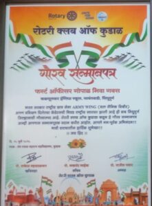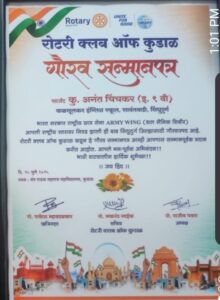 या सोहळ्यामध्ये कळसुलकर इंग्लिश स्कूल व आयबी सय्यद कनिष्ठ महाविद्यालयाचे सहाय्यक शिक्षक तथा एनसीसी अधिकारी गोपाळ गवस व त्यांचा छात्र सैनिक सार्जंट अनंत अभिजीत चिंचकर याची राष्ट्रीय स्तरावरील थल सैनिक शिबिरासाठी निवड झाल्याने कौतुक गौरव सन्मान करण्यात आला.