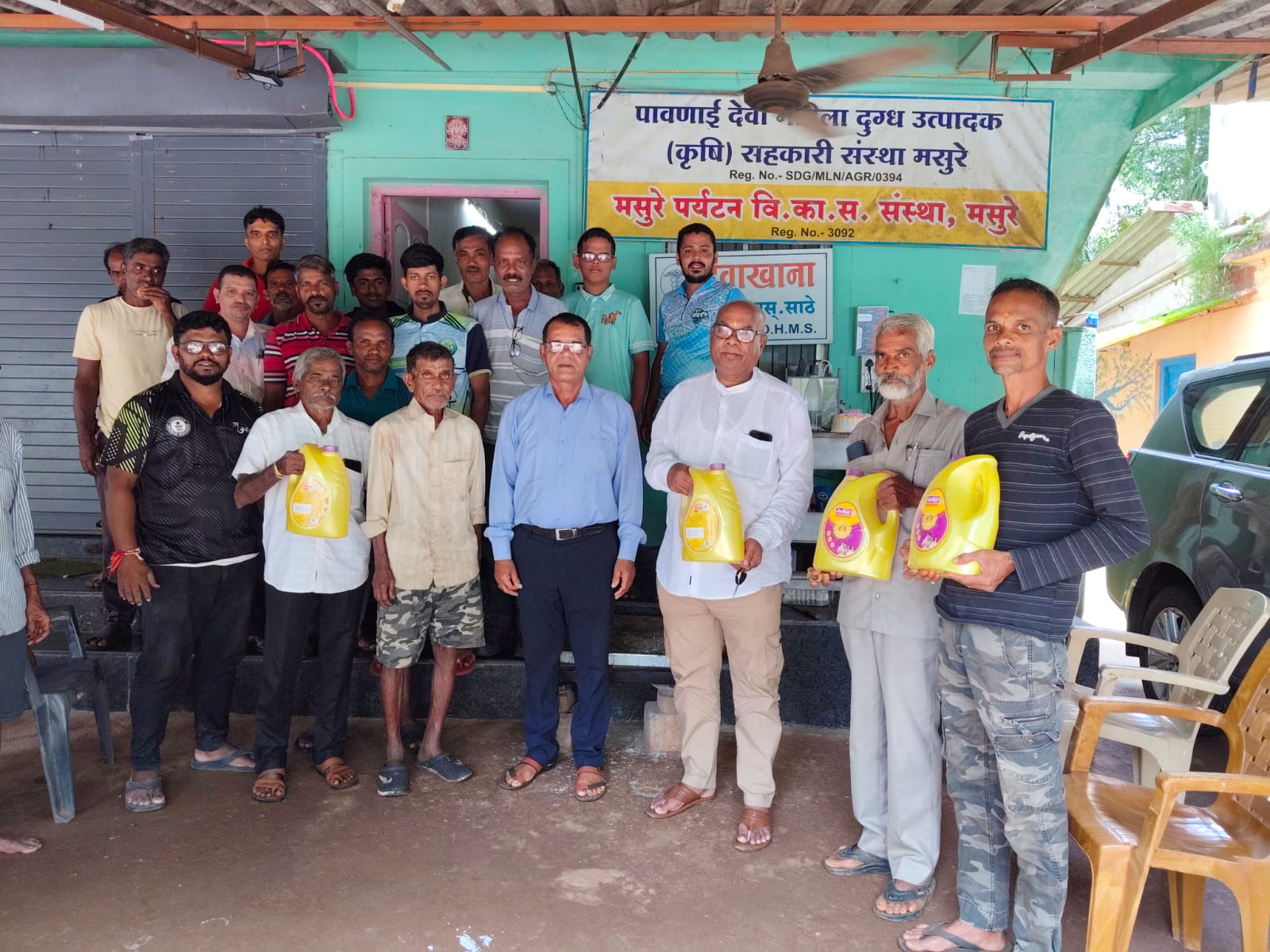 पावणाई देवी दूध उत्पादक संस्था मसुरे यांच्या वतीने मसुरे येथे दूध उत्पादन करणाऱ्या शेतकऱ्यांसाठी मार्गदर्शन मेळावा आणि या शेतकऱ्यांना पावणाई देवी महिला दूध उत्पादन संस्थेच्या वतीने मान्यवरांच्या हस्ते या संस्थेच्या सुमारे 100 दूध उत्पादन करणाऱ्या सभासद शेतकऱ्यांना जीवनावश्यक वस्तूचे वाटप वितरित करण्यात आले.