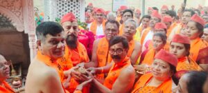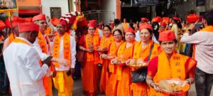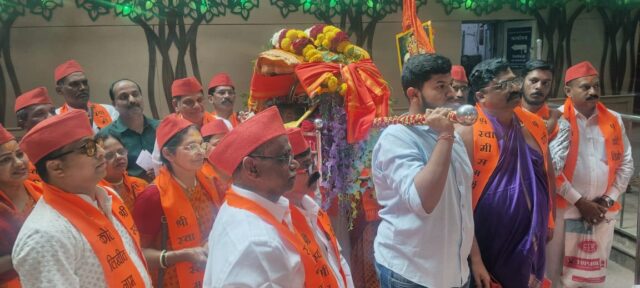 अक्कलकोट: कोकणातील देवगड तालुक्यातील हडपिड येथील श्री. स्वामी समर्थ मठाचे संस्थापक सचिव नंदकुमार पेडणेकर यांनी आयोजित केलेल्या हडपिड ते अक्कलकोट श्री स्वामी समर्थांच्या पालखी सोहळ्याचे सोमवारी येथील श्री वटवृक्ष स्वामी महाराज मंदिरात आगमन झाले. यावेळी मंदिर समितीचे चेअरमन महेश इंगळे यांच्या मार्गदर्शनाखाली प्रथमेश इंगळे यांनी पालखी सोहळ्याचे स्वागत केले. याप्रसंगी मंदिर समितीच्या वतीने समितीचे चेअरमन महेश इंगळे यांनी स्वामी भक्त नंदकुमार पेडणेकर व सहकाऱ्यांचा श्री स्वामी समर्थांचे कृपा वस्त्र प्रसाद देऊन सत्कार केला. यावेळी मंदिर समितीचे चेअरमन महेश इंगळे हे सलग पाचव्यांदा नगरसेवक म्हणून निवडून आल्याबद्दल हडपीड मठाच्या वतीने नंदकुमार पेडणेकर यांनी महेश इंगळे यांचा पाच कोटी नामजप संकल्पनेचे कृपावस्त्र व सन्मान चिन्ह देऊन महेश इंगळे यांचा सन्मान केला.