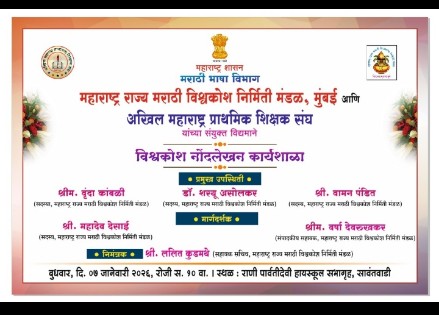 सिंधुदुर्ग: मराठी भाषेच्या प्रचार प्रसार व संवर्धनासाठी महाराष्ट्र राज्य मराठी विश्वकोश निर्मिती मंडळाकडून मराठी विश्वकोशाच्या अद्यावतीकरणाचे कार्य सुरू असून या अनुषंगाने मराठी विश्वकोशातील नोंदीच्या लेखनासाठी महाराष्ट्रभर कार्यशाळा आयोजित केल्या जातात. त्यामध्ये मराठी विश्वकोशाकरिता नोंदीचे लेखन कसे करायचे? याचे मार्गदर्शन केले जाते. तसेच इयत्ता नववीच्या विद्यार्थ्यांच्या मराठी पाठ्यपुस्तकात मराठी विश्वकोशावर आधारित एक धडा आहे त्याला अनुसरून मागील तीन वर्षापासून इयत्ता नववीच्या विद्यार्थ्यांसाठी महाराष्ट्र राज्य मराठी विश्वकोश निर्मिती मंडळातर्फे विश्वकोश ज्ञानसंवर्धन स्पर्धा याचे आयोजन केले जाते. ही स्पर्धा यावर्षी संपूर्ण महाराष्ट्रात ऑनलाईन पद्धतीने आयोजित करण्यात येत आहे. या स्पर्धेचे मार्गदर्शन संबंधी शिक्षकांना सदर कार्यशाळेच्या माध्यमातून करण्यात येणार आहे यानिमित्ताने विश्वकोश व कुमार विश्वकोश यांची माहिती व विश्वकोश नोंद लेखन कार्यशाळा याचे आयोजन महाराष्ट्र राज्य मराठी विश्वकोश निर्मिती मंडळ आणि अखिल महाराष्ट्र प्राथमिक शिक्षक संघ यांच्या संयुक्त विद्यमाने राणी पार्वती देवी हायस्कूल सावंतवाडी येथे बुधवार दिनांक 7 जानेवारी 2026 रोजी आयोजित केलेली आहे.