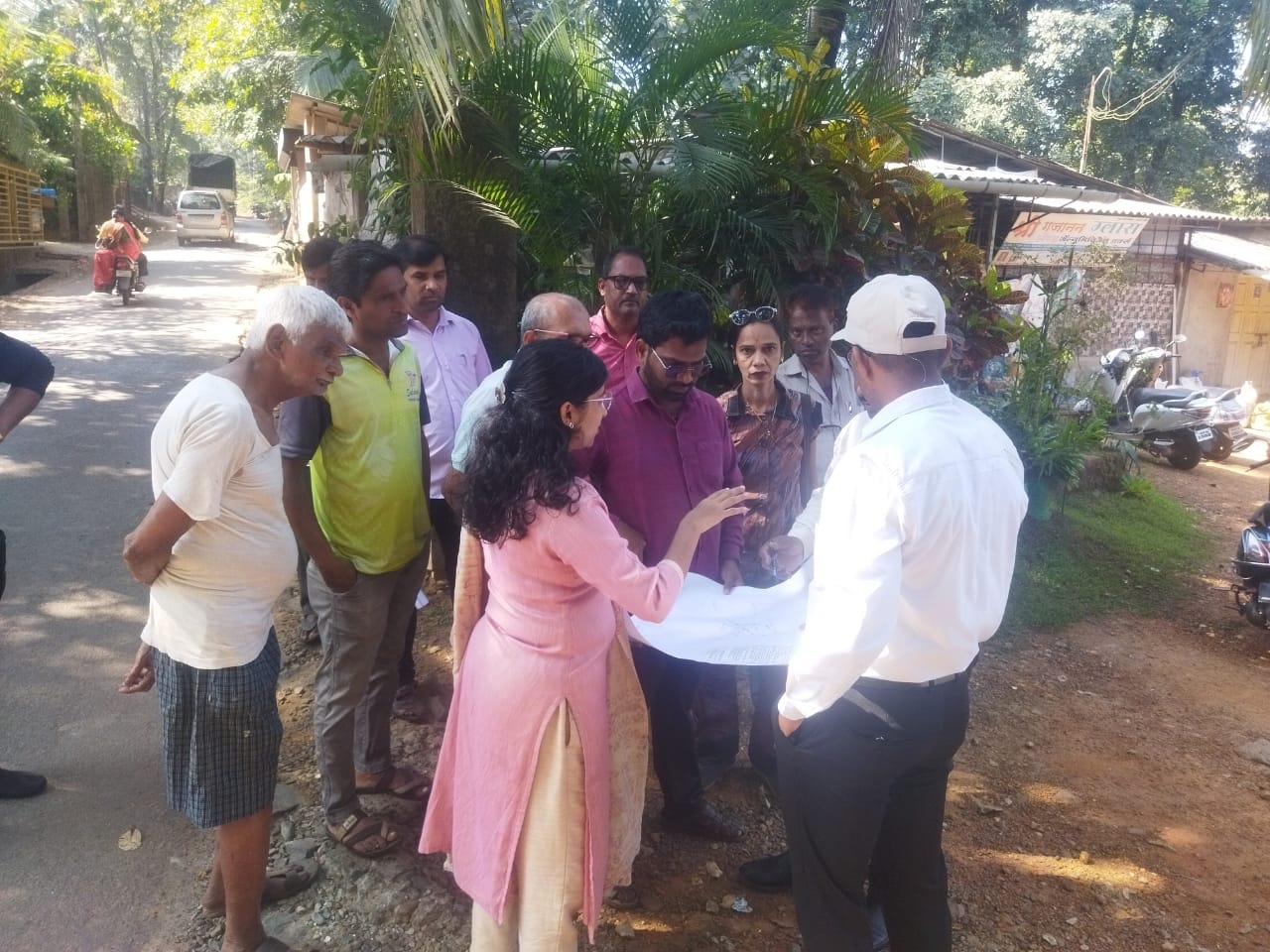 आता बांधकाम विभागाच्या कार्यकारी अभियंता पूजा इंगवले-देसाई यांनी आज प्रत्यक्ष जागेवर जाऊन पाहणी केली. यावेळी भूमी अभिलेख विभागाचे उप अधीक्षक विनायक ठाकरे, बबलू गवस, नगरपालिका कर्मचारी श्री. नासीर, विनायक जाधव उपस्थित होते.