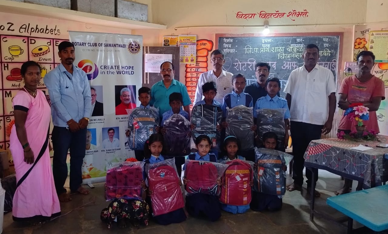 जगातील सर्वांत मोठ्या सामाजिक संस्था म्हणून नावारूपाप्रमाणे काम करणाऱ्या रोटरी क्लब ऑफ सावंतवाडी यांच्याकडून अतिशय दुर्गम भागातील चौकूळ चिखलव्हाळ बेरडकी या प्राथमिक शाळेत शालेय विद्यार्थ्यांची दैनिक शैक्षणिक गरज ओळखून शालेय दप्तर सर्व विद्यार्थ्यांना देण्यात आले. त्याचबरोबर गोड खाऊ देण्यात आला. दुर्गम भागातील विद्यार्थ्यांशी हितगुज करण्यात आले.