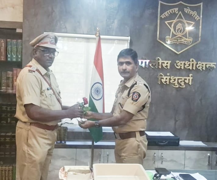 देवगड: देवगड तालुक्यातील तांबळडेग गावचे सुपुत्र पोलीस अंमलदार विठ्ठल दिगंबर जोशी यांना श्रेणी पोलीस उपनिरीक्षक पदावर पदोन्नती जिल्हा पोलीस अधीक्षक डॉ मोहन दहिकर यांच्या हस्ते नुकतीच बहाल करण्यात आली. विठ्ठल जोशी यांनी जिल्ह्यात विविध पोलीस ठाण्यात काम केले आहे. अनेक गुन्ह्यांचा यशस्वी तपास त्यांनी केल्याने गुन्हेगार शिक्षेस पात्र ठरले आहेत. सध्या ते पोलीस नियंत्रण कक्ष सिंधुदुर्ग येथे काम करत आहेत.जोशी यांना पोलीस उपनिरीक्षक पदी पदोन्नती मिळाल्याने त्यांचे अभिनंदन होत आहे.